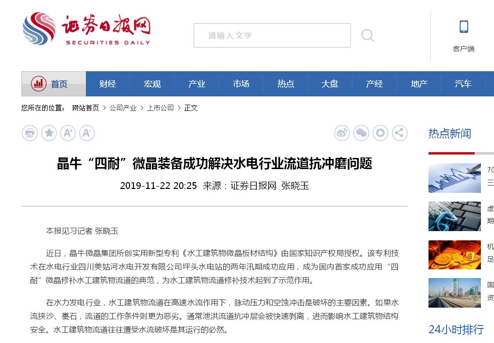 近日,晶牛微晶集團所創實用新型專利《水工建筑物微晶板材結構》由國家知識產權局授權。該專利技術在水電行業四川美姑河水電開發有限公司坪頭水電站的兩年汛期成功應用,成為國內首家成功應用“四耐”微晶修補水工建筑物流道的典范,為水工建筑物流道修補技術起到了示范作用。